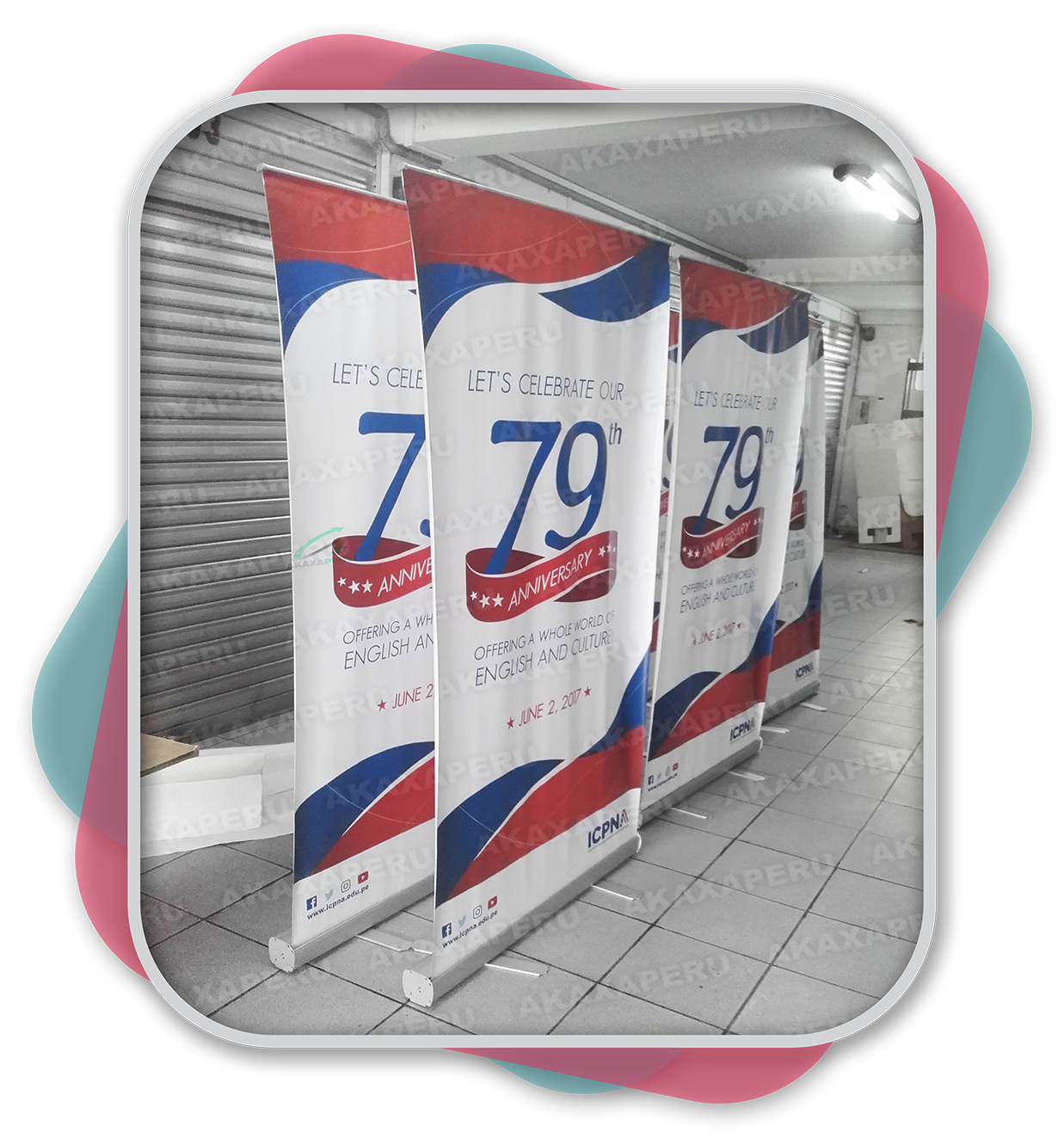 AKAXA PERU SAC ofrece amplia gama de productos importados y, para complementar nuestros servicios, agregamos un plus a ello con las impresiones. Es decir, dejamos a libre disposición de nuestros clientes para adquirir el producto solo o con el servicio de impresión. Estos elementos publicitarios son ideales para cualquier tipo de evento, a la vez que se caracterizan por ser portátiles, ligeros y de fácil instalación.