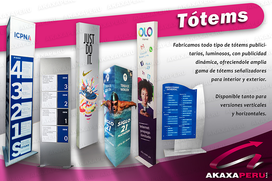 Fabricamos todo tipo de tótems publicitarios, luminosos, con publicidad dinámica, ofreciendole amplia gama de tótems señalizadores para interior y exterior.