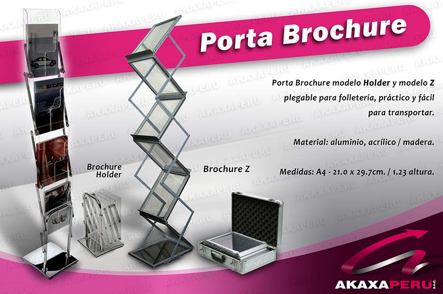 Porta Brochure modelo Holder y modelo z plegable para folletería, práctico y fácil para transportar.