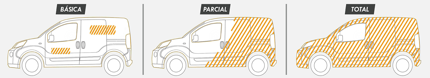 La instalación de un rótulo vehicular puede ser en forma BÁSICA, PARCIAL, TOTAL o instalando sólo gráficos por zonas.